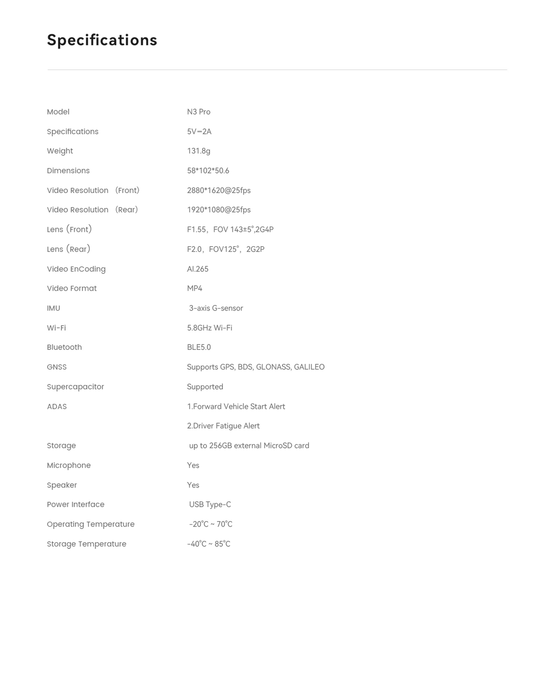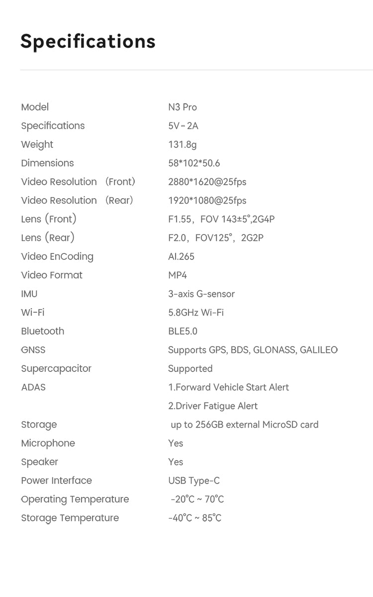 N5 Dual 2026 4K Dash Cam